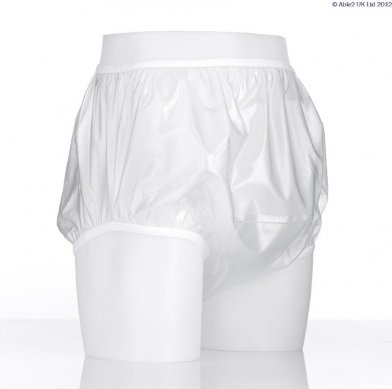 Our plastic waterproof pull on pants are soft and comfortable. They are mashine washable.